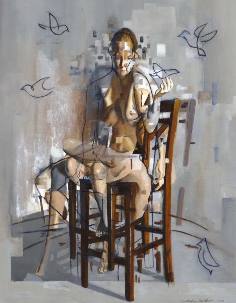 Christopher Lee Gilmer is a self-taught American-Filipino artist known for his surreal and dreamlike paintings. His work often explores themes of mental health, mythology, and the human condition. Gilmer's art career began after a period of hospitalization for depression and hallucinations. During this time, he was inspired by the work of Salvador Dali and began to use art as a form of catharsis. Chris is inspired by data moshing, quantum mechanics, and the oversaturation of images of life as he creates artwork that explores the psychological effects of each physical mutation as if multiple universes merge in time one after another. He explores the disparate outcomes of candid moments as one singular reality by using a cubist framework. Often blurring the lines between realism and expressionist art, sometimes adding primitive line art to entangling almost parallel poses.