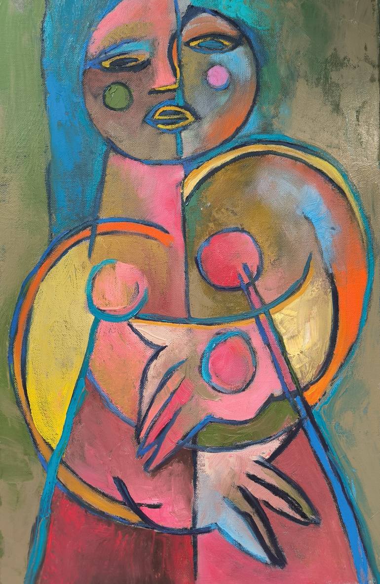 *"In this painting, I explore the themes of motherhood, corporeality, and emotional depth. The figure of the woman is fragmented, as if composed of multiple states, memories, and experiences. Her face is divided into two halves—a symbol of duality: joy and exhaustion, strength and vulnerability, unc...