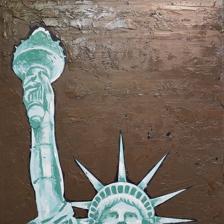 Part of my popular Give Us Liberty series, this painting has colors of mint blue-green, olive-brown and faded charcoal edges