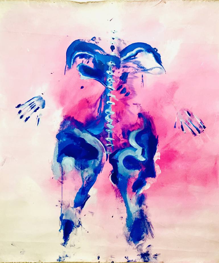 Body print on canvas. Ships either stretched on canvas in a crate, OR ships unstretched in a tube.
