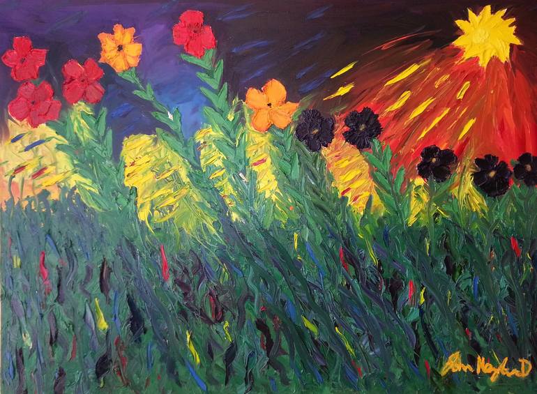 "Glorious" is a wonderful painting that is bright, full of color and motion. It's a large oil painting on an 11 oz heavy ultra premium canvas that is 30" inches tall by 40" Inches wide. The sister painting to this one is another abstract floral called " Wild Flowers Blowen in the Wind" It's also ...