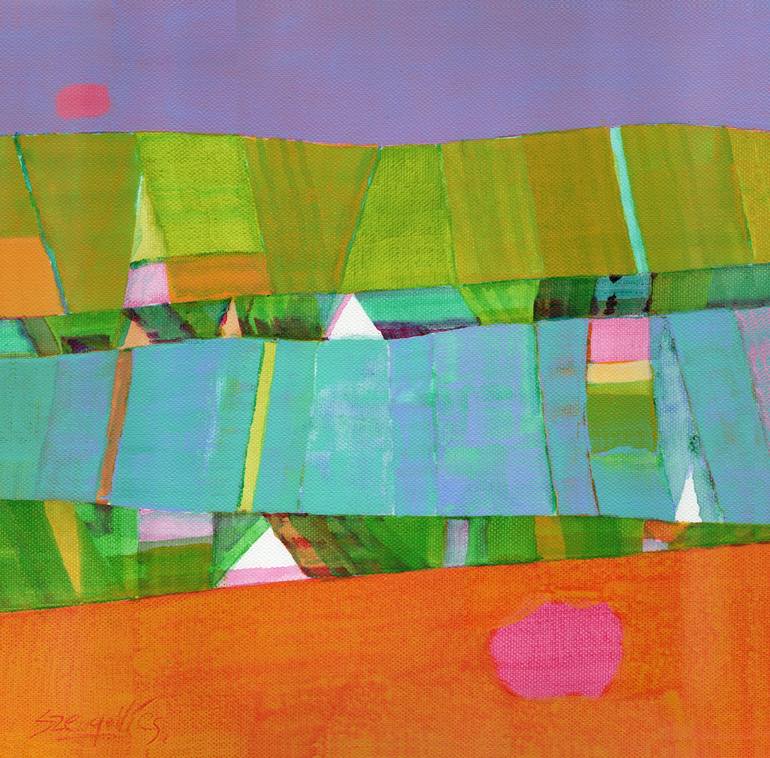 Csaba Szegedi has been exhibiting internationally since 1985, with regular solo shows in Hungary and abroad, and participation in numerous group exhibitions across the globe. His artworks are held in prestigious public collections and private homes worldwide—from the USA to China, Finland to New Zealand. Born in Hungary, he developed an unwavering passion for drawing and painting from early childhood. He studied graphics at the High School of Fine and Applied Arts (1974–1978), followed by award-winning studies at the Academy of Fine Arts in Budapest (1981–1988). After an exploratory early period seeking his unique visual language, he received a DAAD scholarship and artist residency at the historic Atelierhaus Worpswede in Germany, later settling for a time in Munich. His artistic achievements have since been recognized with numerous prizes, awards, and further residencies at renowned institutions, including the Hungarian Academy in Rome. He currently lives in Velence, Hungary, and serves as a professor at the Moholy-Nagy University of Art and Design in Budapest. For Csaba Szegedi, art is a way to explore reality, to marvel at existence, and to seek the magic of transcendence. His goal is to capture beauty and elevate awareness. Each painting becomes an imprint of a fleeting, transcendent moment made eternal. His positive worldview is expressed through vivid yet refined color harmonies and carefully considered compositions. Trained with discipline yet driven by intuitive creativity, he embraces what he calls “order and adventure.” His abstractions draw inspiration from nature and atmospheric phenomena, sometimes music, combining thoughtful structure with melodic color dynamics. His visual language spans from geometric-constructional to expressive abstraction, often described as impressionistic abstraction. While versatile in numerous graphic and painting techniques, he now works predominantly with acrylics, occasionally with oil. He has developed a distinctive layer-on-layer pentimenti technique to achieve his signature chromatic richness—echoing the depth and complexity of reality itself.