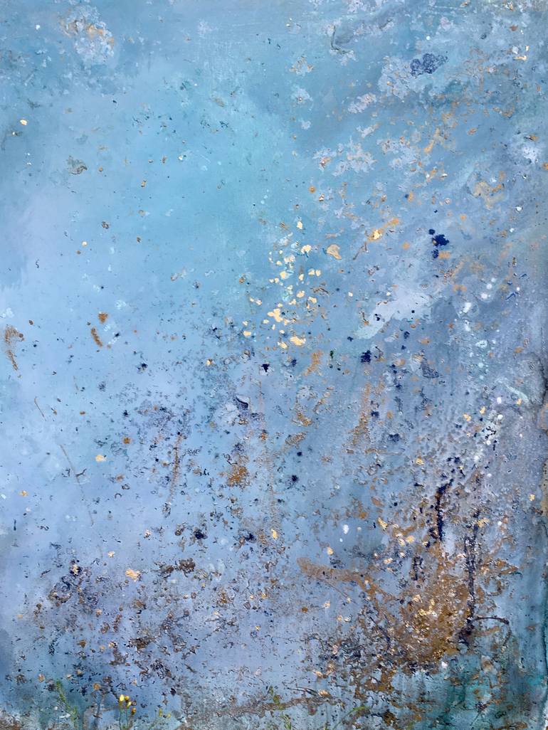 Gold Beneath II is the second of two matching pieces that were inspired by my trips across the vast oceans, always seeking new opportunities, I washed the pigments with water over and over for hours like the motion of the sea revealing ever changing seascapes. I love these pieces.