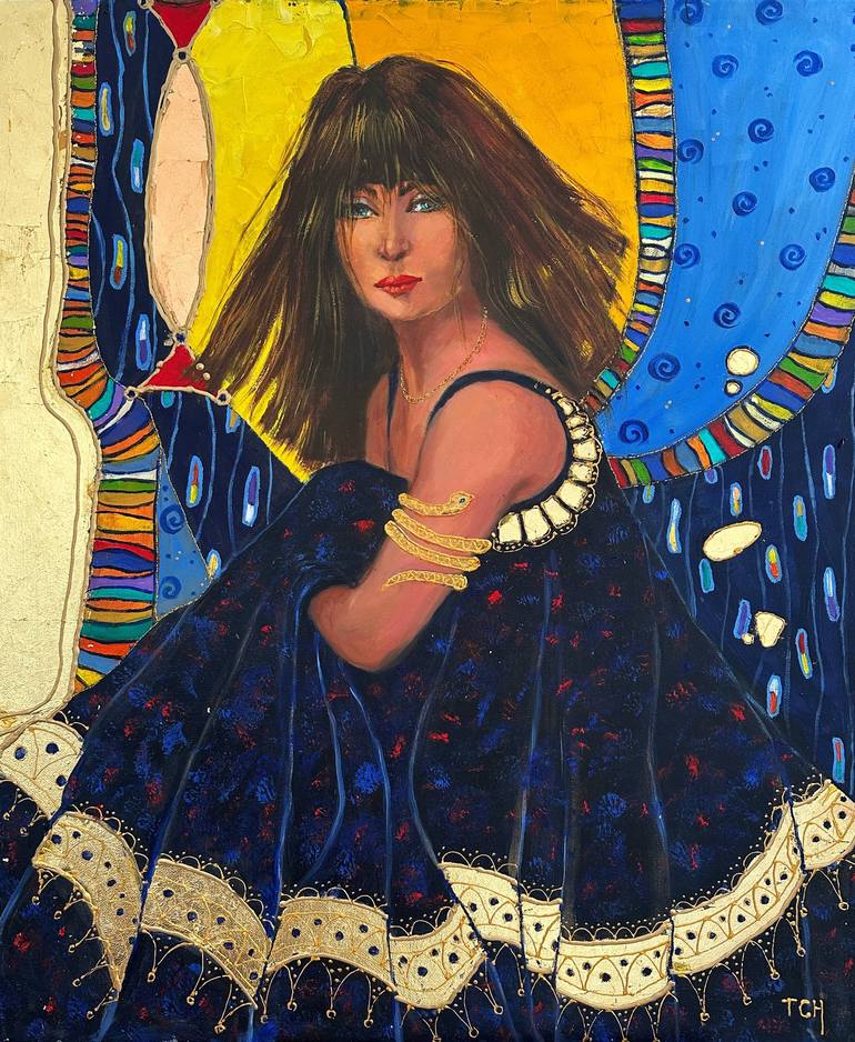 "Gold Lady" - oil on canvas, gold-leaf, glitter, 50x60cm, original, unframed.