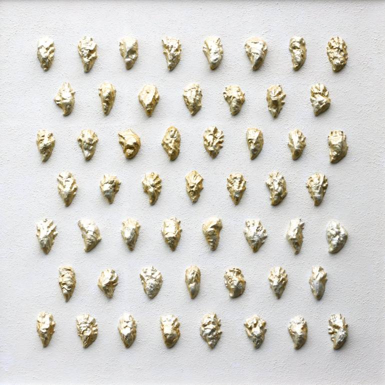 The paintings and wall objects of mine can be placed in the category of colorful minimalism or abstract art. My starting point is the search for beauty in symmetry, rhythm, and color. My passion is to use finds of nature and/or natural materials in my work and transform them into minimal art objects. In my works you will find oyster shells, razorshells, treebarks, capsules, nuts, and seeds but also shredder wood, paper maché, etc: Sometimes the structure is the most important part and the artwork is made entirely in one color. The paintings fit perfectly in a modern environment, home, or business and speak to many art lovers who have a penchant for "less is more". In a more classic interior, it will give a special touch by the contrast it creates.