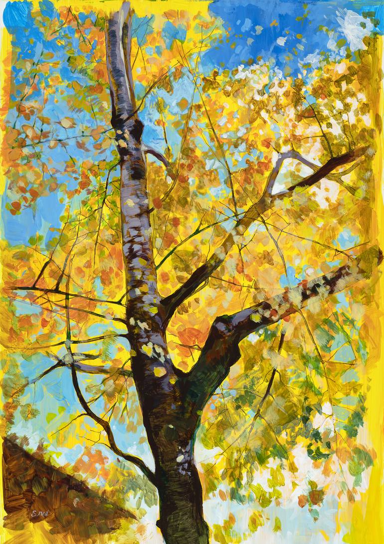 Acrylic on Yupo paper. Natures own firework show. A taste of wine, a taste of Autumn. Sun filtering through a golden canopy is a recipe for the perfect grownup holiday. I painted this scene during a Barossa Valley (South Australia) Autumn, inspired by visiting Rockford Wines estate. The sun filt...