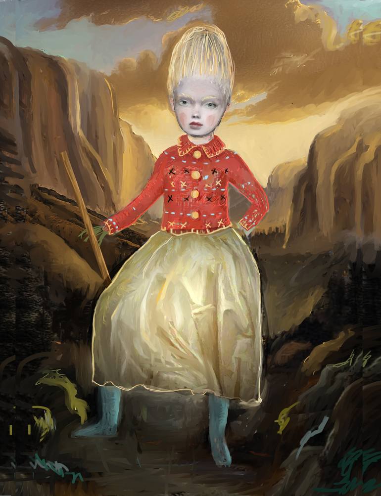 My prime motivation for painting is quite simply the actual mental and physical process of creating an image. From the initial inspiration and development of the idea, using a combination of traditional drawings and sketches to digital collage and iPad drawings culminating with the final oil painting onto canvas. Striving throughout the whole process to capture the core essence and mood of the original concept but also open to the idea of taking the image to somewhere I hadn’t imagined. I divide my time between London and Cortona, Italy these contrasting locations provide much inspiration.Themes that I attribute to this hybrid life of city and countryside include man’s fleeting embellishment of nature, the ivy covered ruin of castle on a hill beyond the motorway, slicing through the landscape. I am interested in the idea of ‘once upon a timeness’ of life, it’s stories, memories of childhood real and semi imagined, with its hovering and presence of a half-understood world.