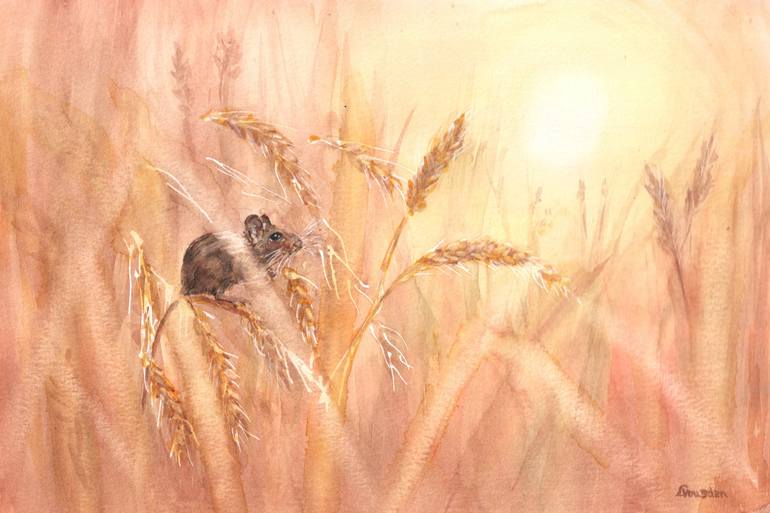 The original painting is 36 cm wide x 26 cm high. It is signed on the front and left unframed. It comes with a signed Certificate of Authenticity. I use Winsor & Newton Cotman watercolours on acid-free 300gsm paper. Inspired by one of my own photos of a golden field in the evening sun. I imagined ...