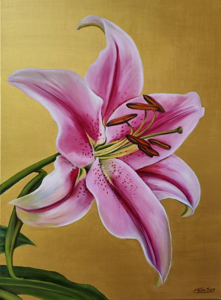 Discover the mesmerizing beauty of 'Golden Lilium', an artwork that captures the radiant essence of this exquisite flower. The vivid hues and intricate details of the artwork are sure to captivate your senses and leave you spellbound. Adorn your living space with this masterpiece and let it bring a ...