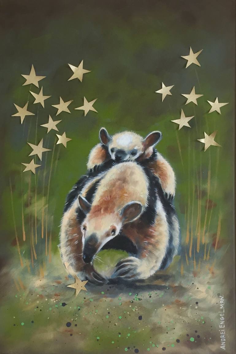 Warmth in a family of animals, and communication with nature, where everything is harmonious: animals, stars and flowers.