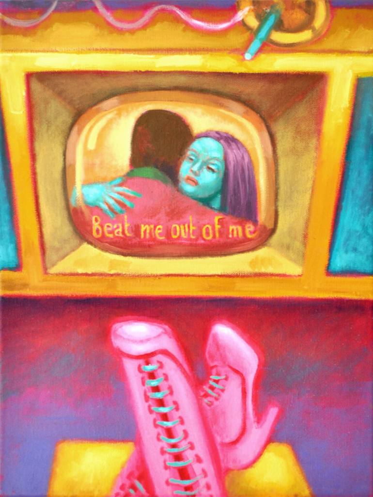 I am a contemporary artist living in The Netherlands. I am very much influenced by Dutch miniature art from the 17th century. The content of my work concentrates on contemporary phenomena and in part focuses on the 70s/80s, decades that I feel very connected to when it comes to music, fashion and societal developments. I love working with different media like clay, wood and paint. Sometimes a subject needs a more 2D approach and becomes a painting, sometimes I like to add 3D objects in clay and wood.. or even make my own frames which entail a story in itself.