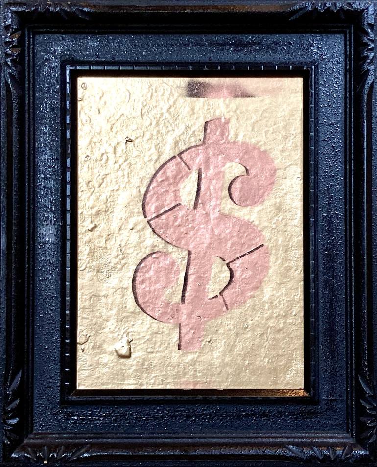 Who wants honey, long as there's some money. Shiny gold and copper enamel spray, layers of texture built up as the story underneath crafted itself. Now frozen, encased narrative when at the end of the day it's always all about the Money. Dimensions listed include the frame as pictured, an upcycled...