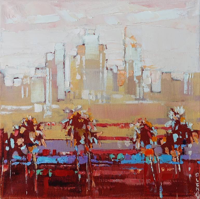 Hi, I am Olena McMurtrey, a contemporary artist based in California and specializing in cityscapes, oceanscapes, and landscapes. I have lived in several large cities on both sides of the world and finally settled in California. I got inspired to pursue furthering my art education while living in Los Angeles and completed the Master of Fine Arts at the Academy of Art University, San Francisco. I am always experimenting and playing with many mediums to find the exact tool to express my creativity and voice. I enjoy feeling the thickness and heavy flow of oil and acrylic, these two mediums are so different and alike at the same time. The biggest challenge for me is to find a unique mix of colors to achieve depth and vibration in my paintings. My landscapes convey natures' calmness and tranquility through a balance of color, shapes, temperature, and abstract design. The bodywork of cityscapes inspired by my time living in the beehive of the Big Apple, and later in the City by the Bay during my grad school. There is something magical when the sun sets exactly along the cross streets in coastal cities, beaming sunrays into shattered reflections of a concrete jungle. For precision to bring the grid of cityscapes into a dance with light, oils are my favorite choice. Through my passion for windsurfing and surfing, I felt compelled to paint waves, the element of fluid force that many deeply connect with. In my paintings, I thrive to bring the mood of calmness and wildness - a blend of beautiful and dangerous. To achieve the expanse intensity of ocean depth, I work with the dynamic nature of oils in many layers to control the desired design. I depart from strictly photo-realistic effects and focus on abstract elements and bring visual cues of the maker's hand to achieve painterly resin.
