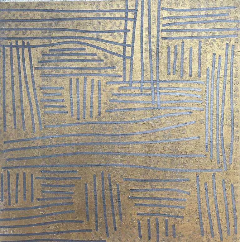 One of a series of 20 small paintings created during the first days of 2023. This painting is part of a set of three paintings entitled "Golden Network." Each reminds me of Japanese or Thai temples. Acrylic on wood panel. Signature, title, date and artist inventory number on the back. Ready to han...