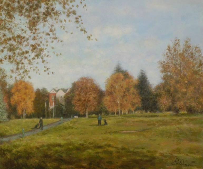Playing golf on a summers day at Coulsdon Manor in Surrey, England. Painted on double primed acid free canvas board.