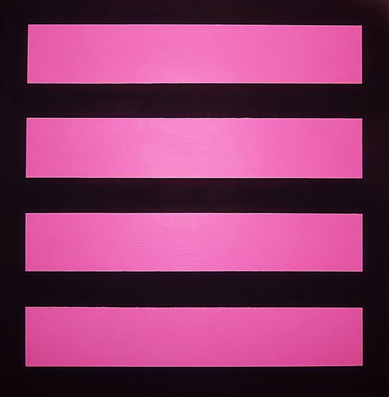 This is one of a series of five paintings, each 12” x 12”, painted simultaneously in November 2015. Although all of them are “abstract”, I purposely tried to make them as different from each other as possible. I worked within the confines of hard edge, reductive, color, form, rhythm, pattern and fig...