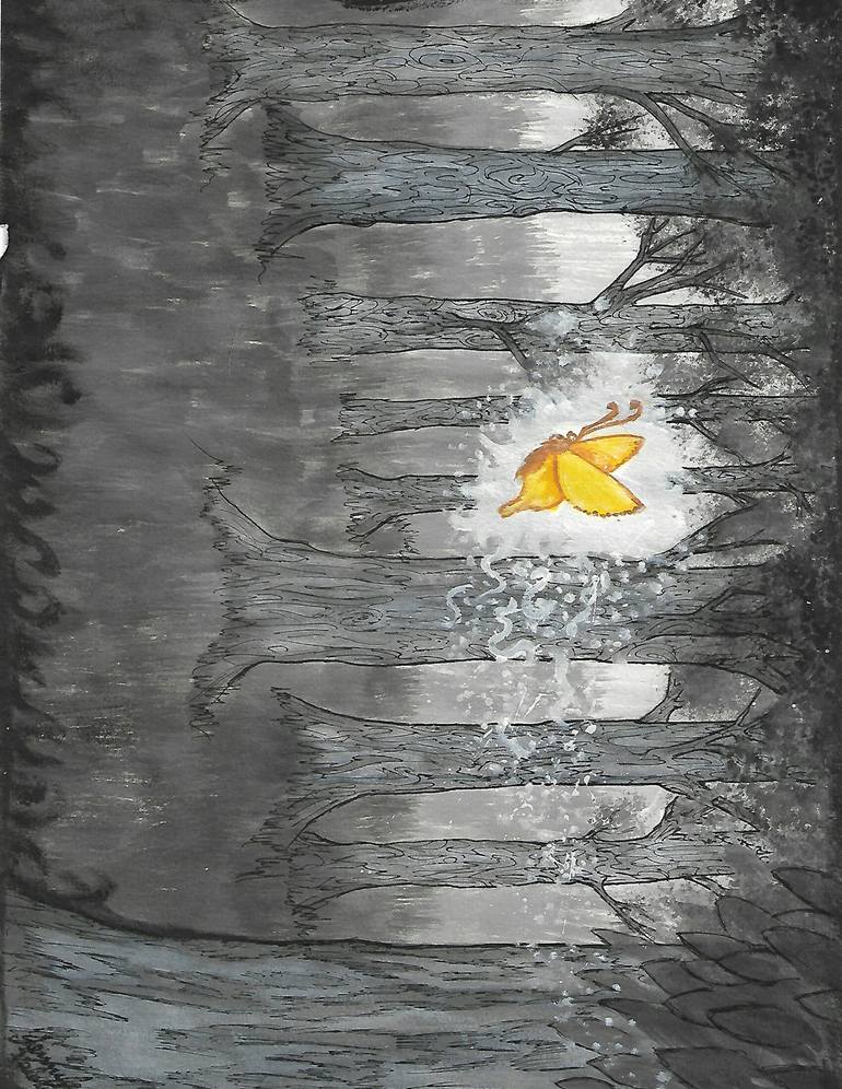 I had a dream about this painting. I dreamt of drawing up the image while the song "Good Day Sunshine" by the Beatles played in my mind. When I woke up, I saw the same kind of butterflies flying in my yard. I decided this one needed to be manifested