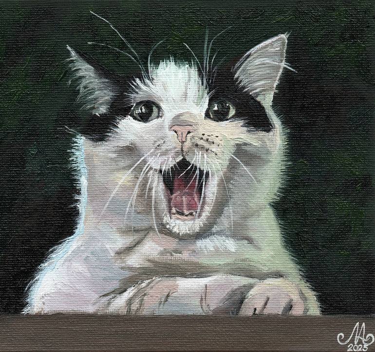 A new day begins with a yawn, a stretch, and a loud declaration to the world. This cat, caught mid-moment between sleep and wakefulness, demands attention—whether from the morning sun or an absent breakfast. Its wide-open mouth, sharp whiskers, and gleaming eyes are all part of an unfiltered, unapol...