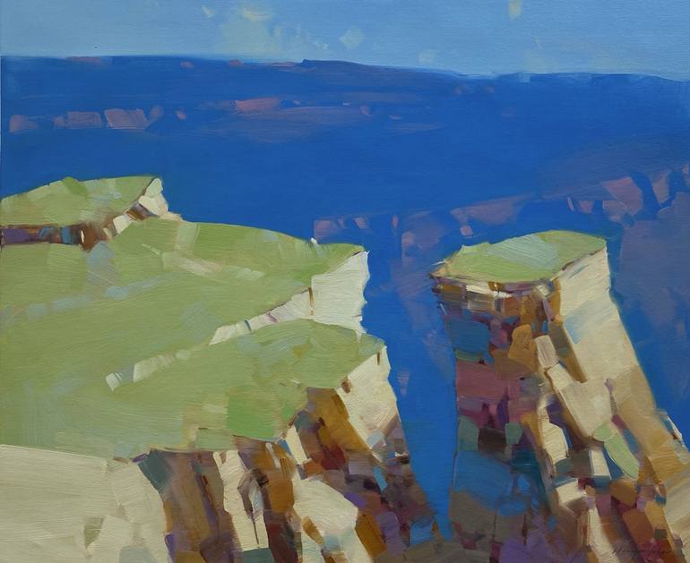 Artist: Vahe Yeremyan Work: Original Oil Painting, Handmade Artwork, One of a Kind Medium: Oil on Canvas Year: 2022 Style: Impressionism, Subject: Grand Canyon, Size: 30" x 36.5" x 1'' inch, 76x93 x 3 cm, Unframed, Stretched on Wooden Bar, Gallery Wrapped, Ready to Hang. Yeremyan is an Armeni...