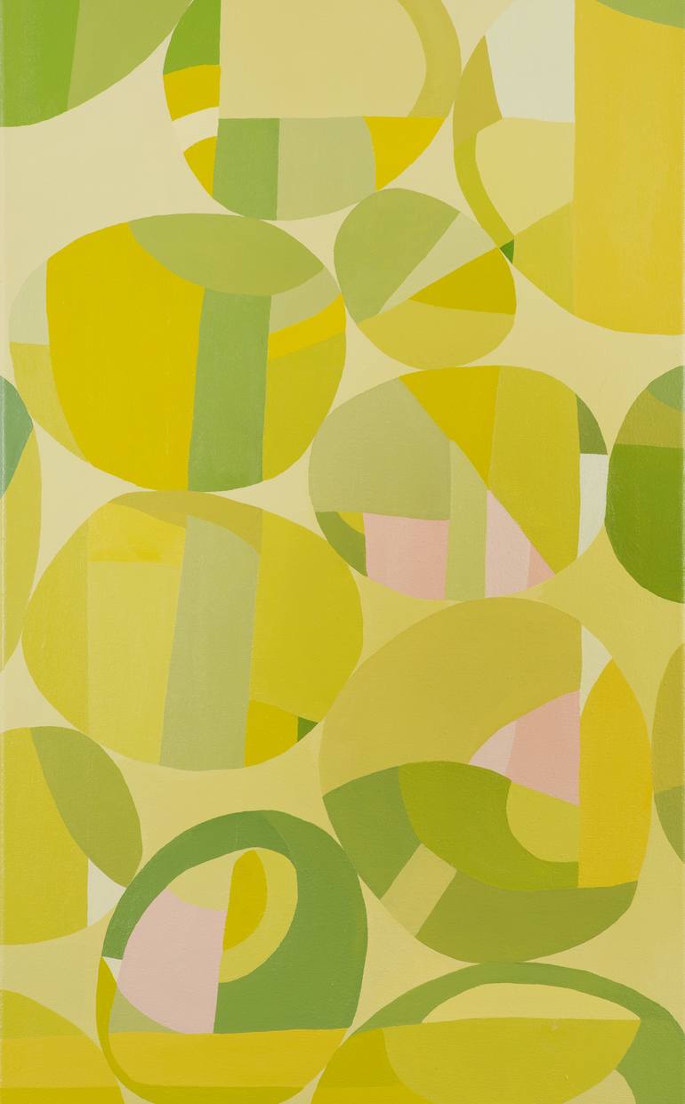 My colors are inspired by vintage materials, old crayons, textiles, toys. I used to paint in a more representative way, depicting the actual objects, the signs and buildings. Over the past few years, I started to abstract the idea of my own memories, being in a space like a roller rink or playroom; recalling patterns on juice glasses, board games, beach towels. I’d been stacking shapes in my work for some time before I made the connection to my longtime job as a firewood stacker. The way I fit the pieces together, balancing them, supporting against each other, or about to fall, but never quite. Then the shapes became a way to explore color combinations. I use acrylic paint, a lot of color mixing, layers, in person you might see the texture of the canvas or wood, shapes are smooth edged but a little messy. Vibrant and murky colors side by side. I love trying to get the look of layers of old paint on the side of a building or a piece of furniture. Where you can read the surfaces. You can see ridges of paint strokes, or you see the grain beneath, so the paintings become tactile like the sculptures. I realized that my most recent paintings represent an aspect of who I am and where I am. Both a more optimistic side of myself, as well as the wistful side of me that longs for something I can’t describe. When I painted vintage cars or phone booths, I was interested in the nostalgia one might feel for something they can’t quite remember themselves, but can appreciate the object (or image of it) that suggests a memory. I could find great pleasure in looking at such a thing. The process of painting deepened my experience of the subject, and sometimes brought me a story that a viewer would share. Moving to an abstract representation of these ideas was a natural progression in my work. I am finding my personal connection to what I make, linking a formal approach to an emotional, expressive one.