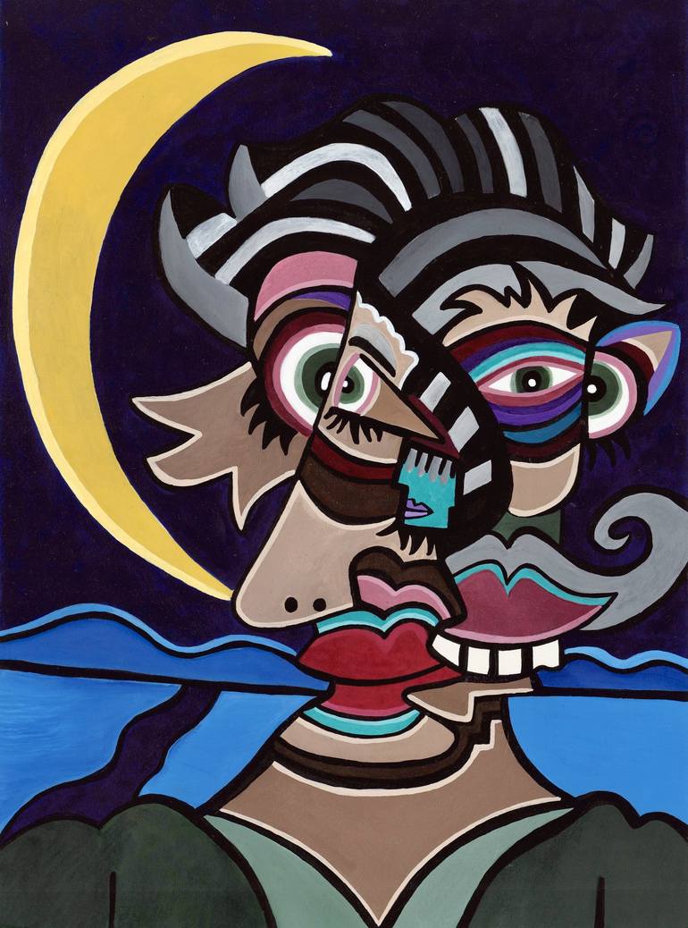Title: Grandiose Delusions Original Size: 9x12 Medium: Acrylic on Arches Watercolor Date: 2023 Colors: Deep Blue, Shades of Blue, Purple, Olive Green, Green Turquoise,Tan, Burnt Umber, Crimson, Black, Gray Scale, Yellow