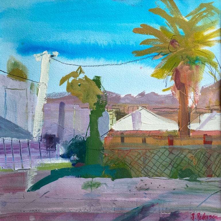 Grandview, Glendale is part of a series of paintings I created based on iphoto taken from a train road trip from Santa Barbara, California to Union Station, Los Angles. The works in this series are titled based on the actual locations I captured from the train. I am describing memory, movement, ligh...