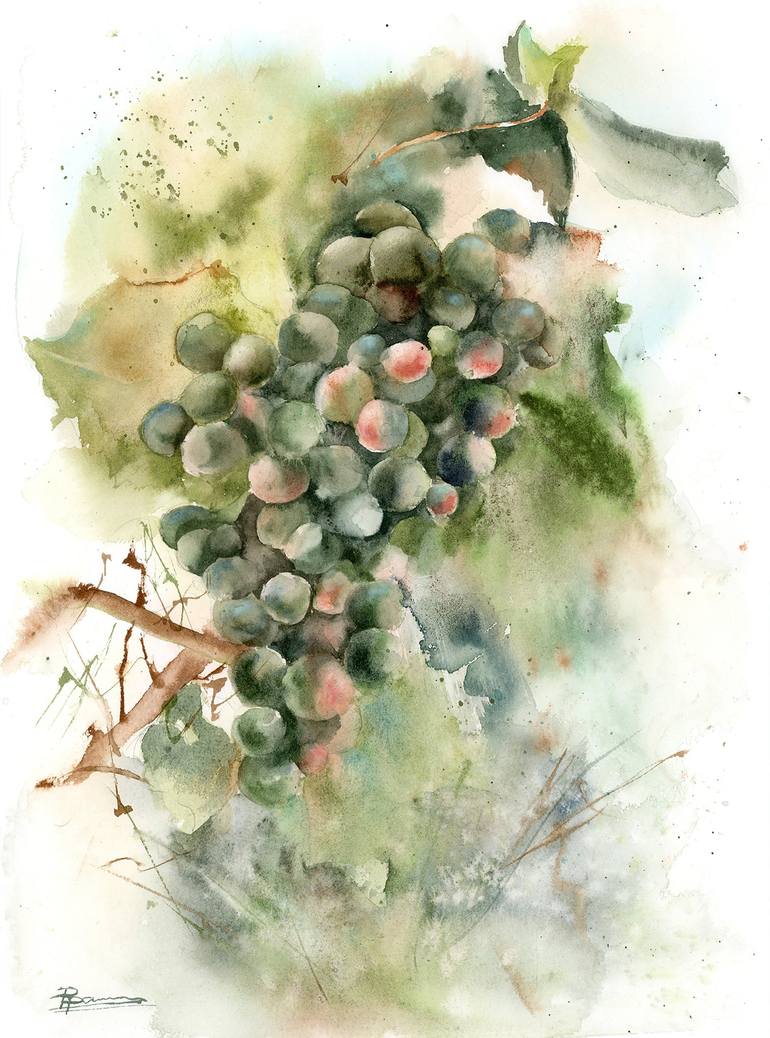 Grape branch - Original Watercolor Painting Surface: 100 % cotton cold press paper 300 gsm. Watercolor paints