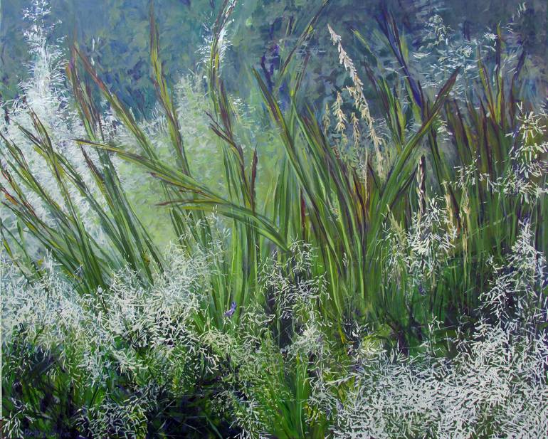 This is a painting that shows the depth of the grasses in south east Arizona at the end of the summer. The monsoon rains have turned the high desert to a beautiful grassland. The depth in the grass is alluring and mesmerizing. There are grasshoppers in there. Currently on exhibition at Spectrum Gal...