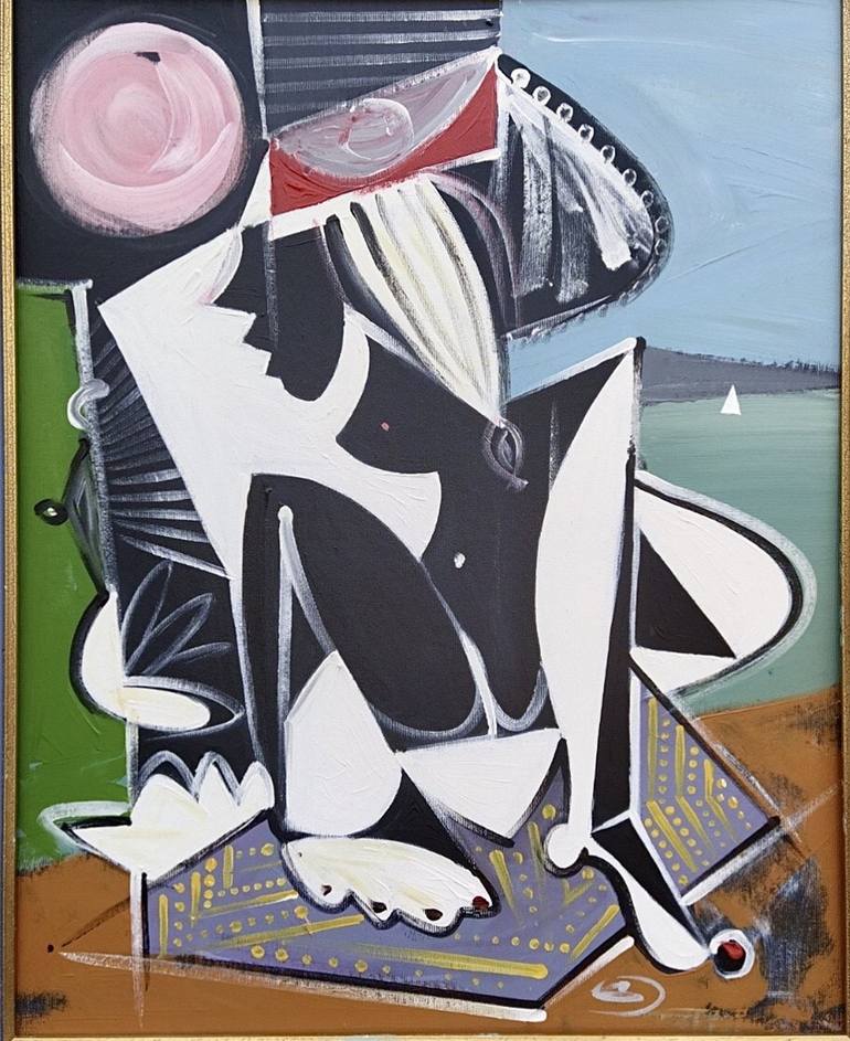 This acrylic on canvas mounted on fiberboard artwork "Gravel Idyll" was created in August 2022 in the summer studio of Oliver Szax. The piece has a matching antique wooden frame that is included in the price of the artwork. The total size of this painting including the frame is 80x65x4cm. Original a...