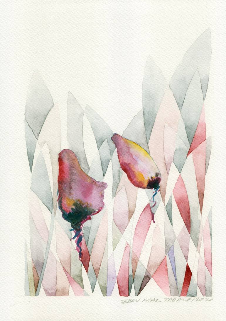 This artwork using pink gray and orange colors is inspired by nature. It describes the continuity of life in every environment. This unique piece is signed and titled on the back by the artist. This watercolor work is not framed. Painting watercolor on heavyweight linen finish acid free paper 300g/...