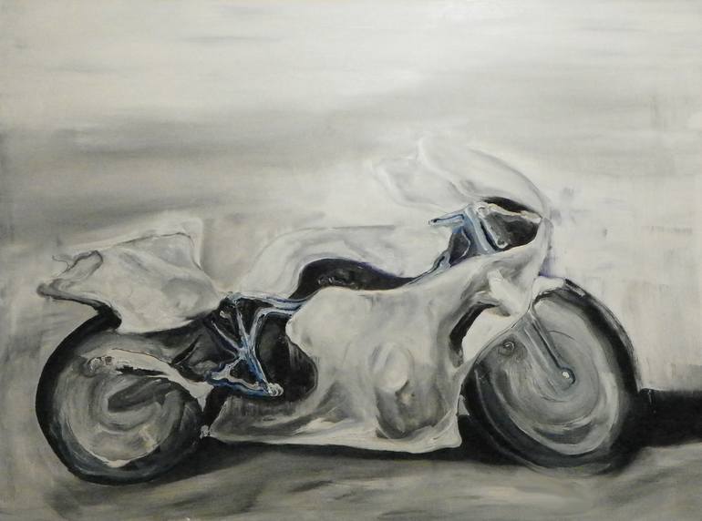 Motorcycle on a gray day. 36 inches by 48 inches, oil on canvas.