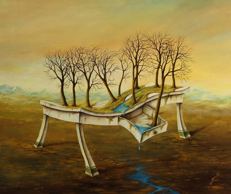 Jiří Janulík *1977 – Czech surrealist I have been interested in drawing ever since my youth and eventually, many years later, started working with oil paints. Surrealists like Salvador Dalí, René Magritte, Toyen – those are just a few names which brought, and still bring, me a great amount of inspiration. Their works have fascinated me ever since I took my first steps towards art. In fact, my first paintings and drawings were strongly influenced by Salvador Dalí in particular. People often connected me and my work with his person, but I would always strive to be myself. That is why I have decided to follow my own path and created my own, original style. Over time, more renown artists would influence my works. I have, for example, been fascinated by Rembrandt and his tenebrism which is often a part of my sceneries. All my paintings are preceded by a number of studies which make a base for my final work. However, I often find myself thinking about and changing parts or even the theme which together makes a base for my final work. I am open-minded and outgoing person - if a customer has their own vision or ideas, I am more than happy to hear them out. That being said, surrealism is what truly drives me and my work. I am always excited when a work can contain my imagination, my own fantasy. And that is how my original, Czech, surreal paintings are made. Each of my works is an original – even if I recreate one motif several times, it is never just a copy of the original work. I tend to change many details which helps me create unique mood and atmosphere. I also annually paint the clapperboard for the Zlín Film Festival. These clapperboards are auctioned during the festival and part of the earnings is dedicated to support young filmmakers etc. I am always eager to discover and try new things. Each of my paintings also reflects my own self.