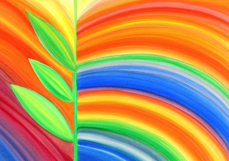 Green Branch and Rainbow. Meditative symbolic painting. Growth, vitality, rainbow. The joy of life. Interaction of all living things on Earth and Heaven. The painting was done with watercolors on watercolor paper 300 g. This artwork is sold unframed. Materials used: watercolor paper, watercolor pa...