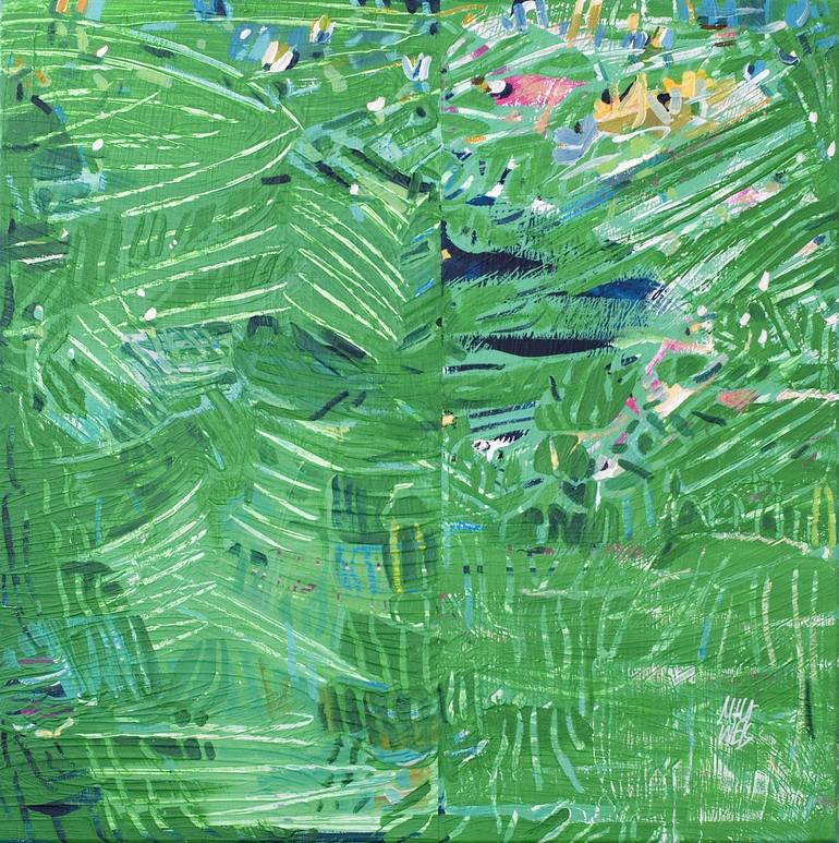 In this work, I have captured the boisterous power of nature through vivid strokes and bold colors. It is an expressive piece in which abstract forms and naive elements merge with minimal details to create a harmonious scene. This composition brings the essence of a lush garden into your home and re...