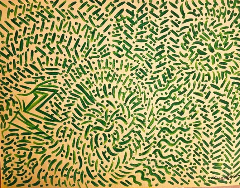 "Green Pea Galaxy" is an original watercolor painting created in 1982. The abstract composition features a vibrant use of green, giving the piece a fresh and contemporary feel. The artist's skillful application of watercolor on paper results in delicate washes of color and nuanced textures. The art...