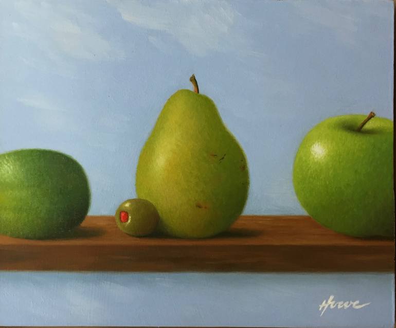 I'm a classically trained still life painter living in Minneapolis with a studio in the Northrup King Building. The building was a giant seed factory that has become a well known destination for incredible art events in north Minneapolis like Art-a-Whirl. My latest work shown here started when I decided to let my imagination dictate the compositions. I wanted to try to create a fresh, slightly humorous take on still life. Paintings started popping into my head fully formed while I was in a half awake state. Dreaming of floating fruit and walking teapots sent me towards expressing the human condition through anthropomorphic vignettes. By the use of objects as opposed to figures, I'm taking out gender and cultural cues and hoping everyone can relate to the stories. I describe my work with the adjectives: colorful, warm, joyful, positive, graphic, clean, modern, whimsical. If you are interested in a commission or viewing work in person, please contact me at . You can follow me on Instagram .howeareyou or see more on my website .