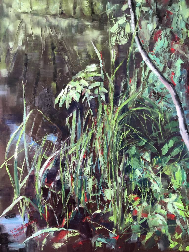 To make this painting, I was inspired by the landscape in one of the Riga's districts. It is Jugla, a very beautiful and green district with a picturesque lake called Velnezers. It was a beautiful June day. The feeling of morning freshness was simply magical. The painting is made in oil on canvas s...
