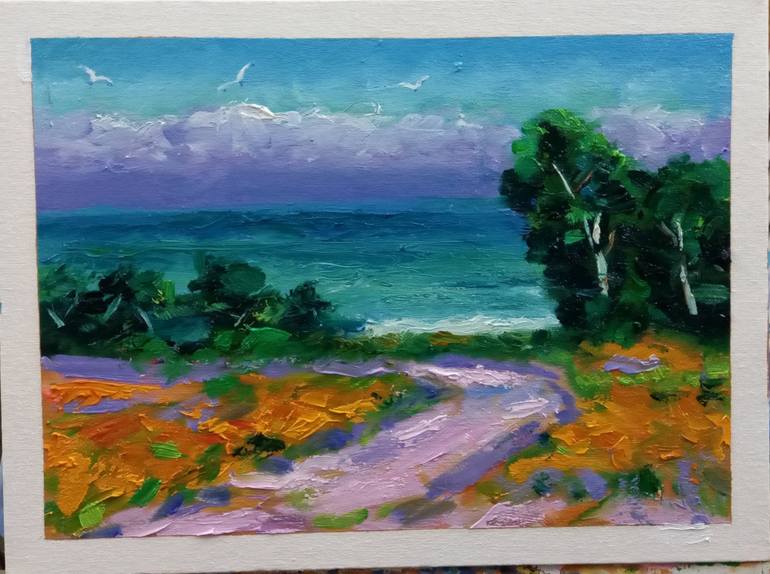 Green seascape , Painting: Oil on Canvas. Birds in beautiful Seascape, painting with bright colors, made with oil painting with knife and brushes this work is on clean flat on stretched canvas , reflecting my love of landscape art in abstract way all artworks sent with a certificate of authentici...