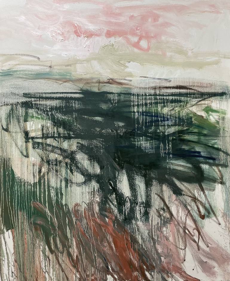 Large expressive and gestural semi abstract landscape painting inspired by long walks.