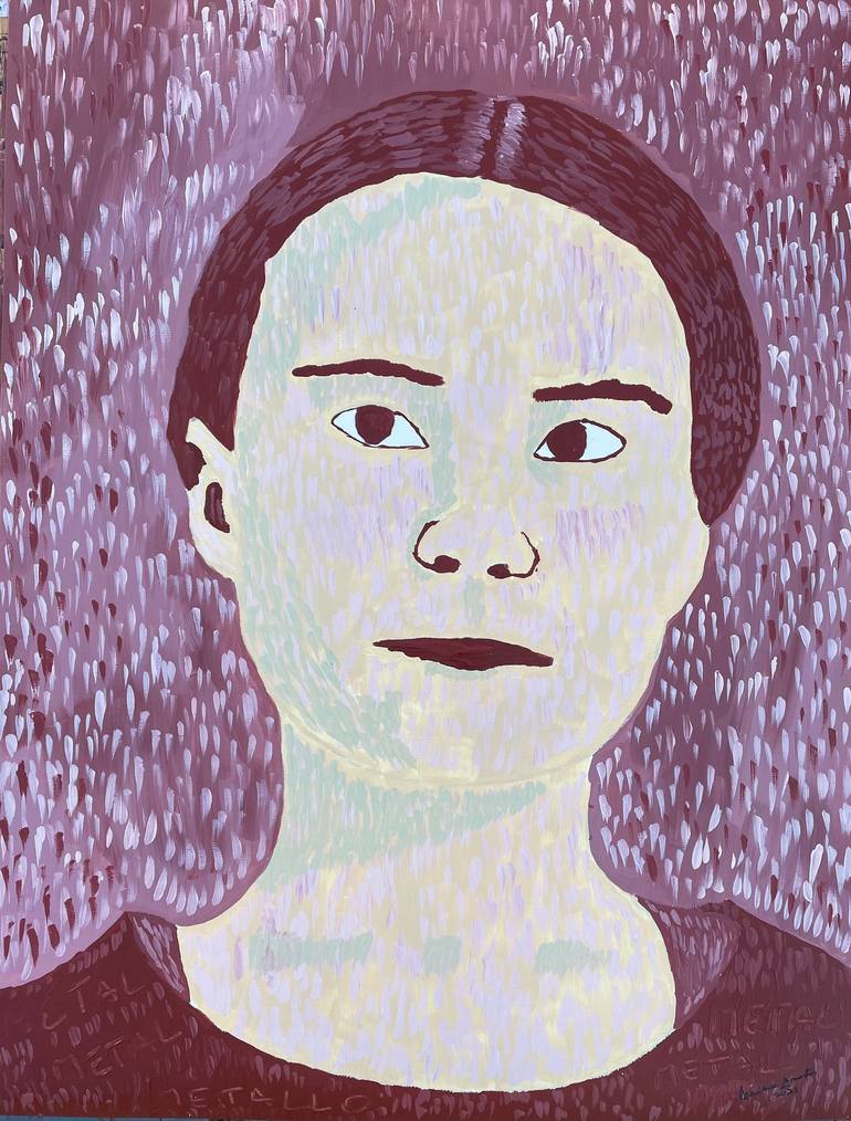 Greta Thunberg and the element metal. Note that on her clothing you can read the word metal in several languages. Year: 2021 Size: 24 x 18 inches Medium: Acrylic Surface: Acid free paper Frame: 1.5 silver wood frame Style: Contemporary; figurative portrait Feature: Framed. Free shipping in...