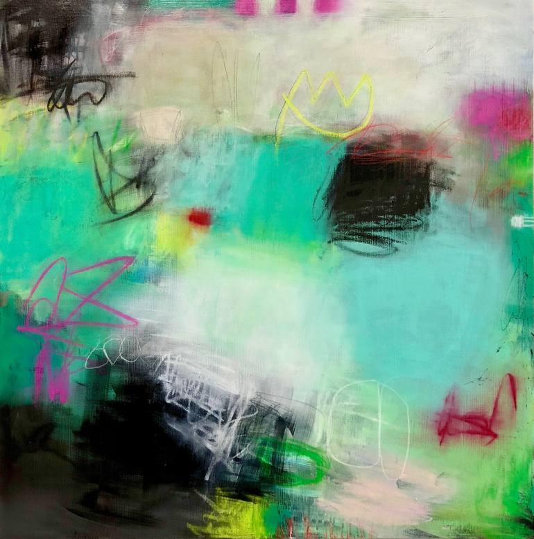 This series was inspired by a recent trip to Barcelona Spain, where I was enthralled with the garage graffiti. It is meant to be bold and a bit raw, but also celebratory.