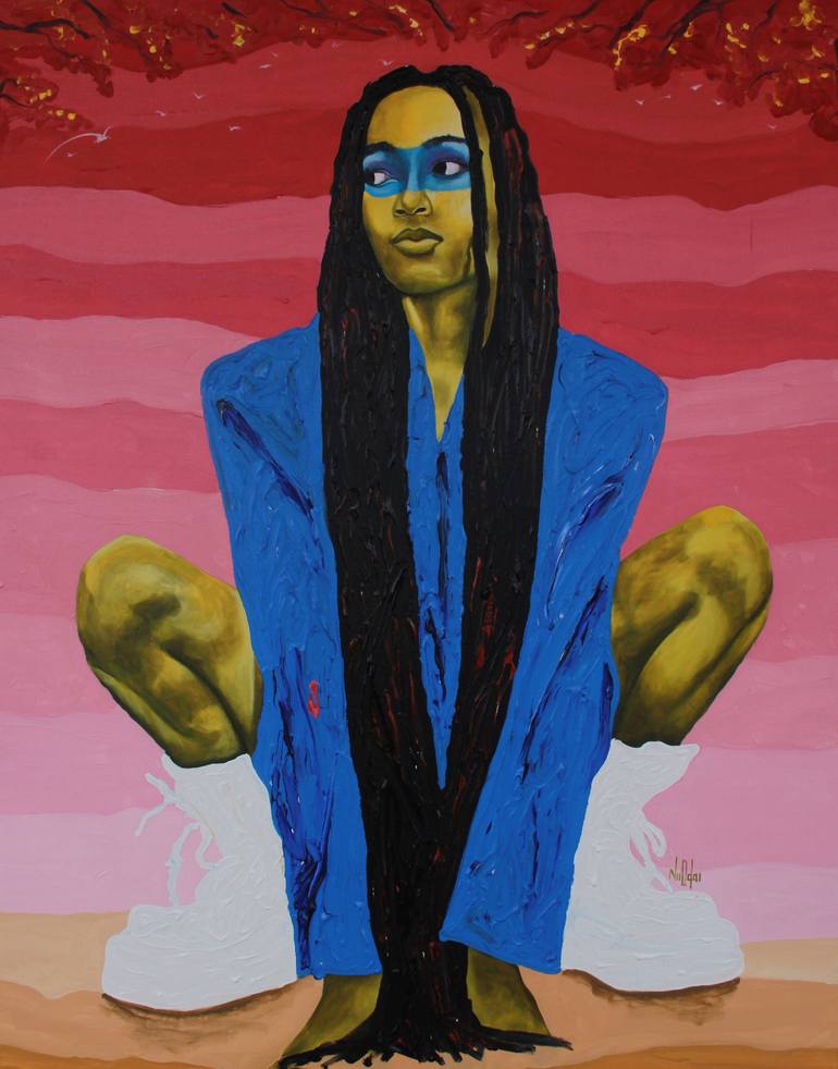 In his work, Tetteh condenses the internal sentiments and tensions of his characters and focuses them, using the eyes as the outlet for expression. In this way his subjects become independent bodies, bold and daring. By examining the psychological conditions we as humans are prone to experience, and then exhibiting them through physiological manifestations of that experience, Tetteh’s work is processual in nature, approaching each personality with care and consideration. His experiments are not only in content but in form, colour, and texture, manipulating paint through swift brush strokes and thick impasto. Theophilus Tetteh (b.1991) lives and works in Accra, Ghana. He studied Graphic Design and Painting at Marimus Art School, whilst continuing to experiment with different media. After finding solace in the pictorial possibilities that Expressionism offered, he found figurative paintings most effective in exploring emotive qualities. His figures which often appear static and singular, are in fact dynamic entities of the local culture. Tetteh has participated in solo shows and group projects across Ghana, notably the Kente Design Project for Kejetia Market (Kumasi, 2017) and National Theatre of Ghana (Accra, 2018). He was recently awarded Artist of the Year (2021) by the BE OPEN Foundation and is also a member of the Ghana Association of Visual Artists (GAVA).