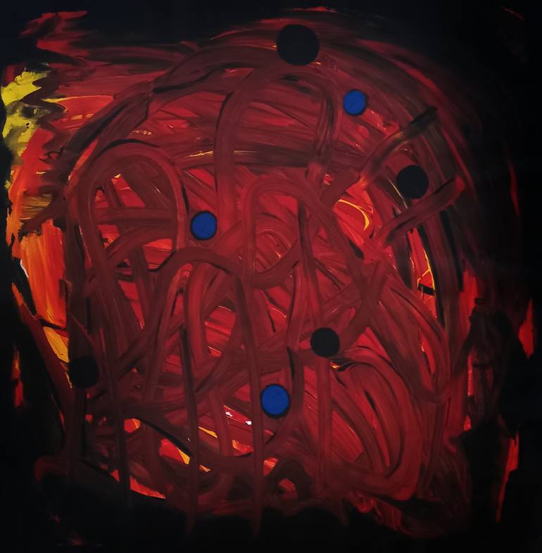 My inspiration is Umberto Boccioni's paintings. In "Gymnasts" I depict action. But softer, smoother, calmer. I show dynamics with color, curves, contrasts. Water-based acrylic latex enamel, synthetic canvas, 2023 I work without stretcher, in Jackson Pollock style. I call this style associative exp...