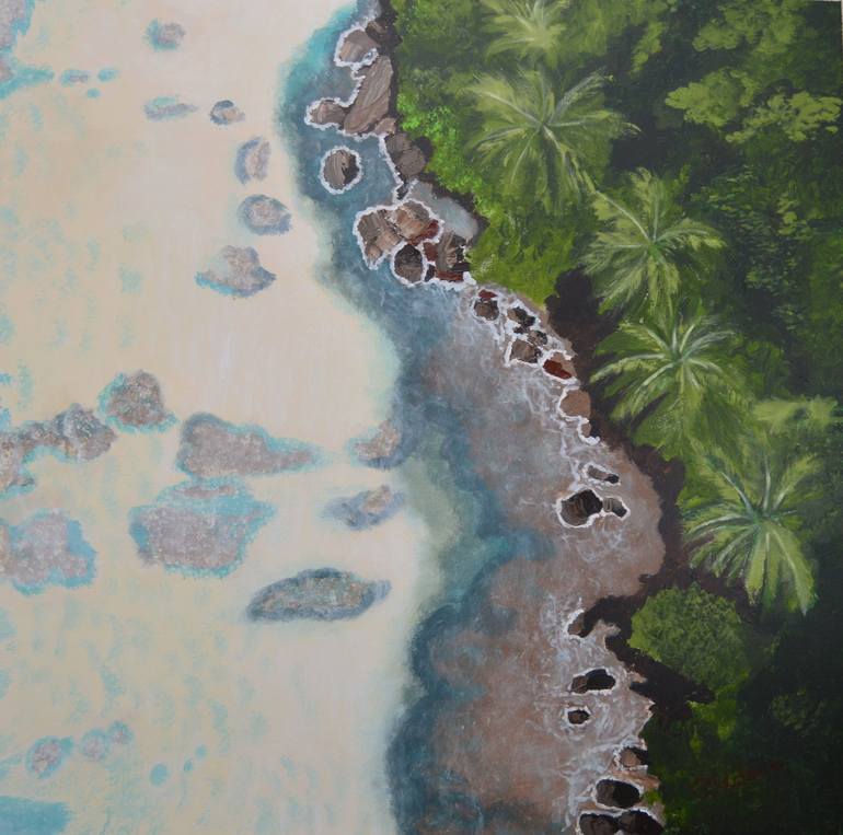 Need a little ocean? Travel to this Hana beach from your favorite place at home or from your work. You will feel that everything is fine. I painted this seascape in my studio, with acrylic on linen canvas, with the help of the spatula for the rocks, sea sponge and toothbrush for the vegetation and ...