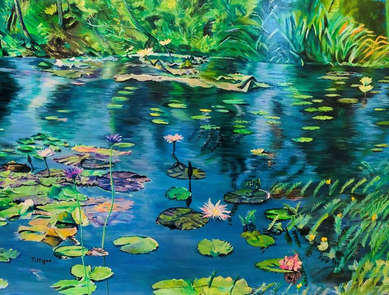 This work was inspired by the beautiful botanical gardens in Naples, Florida. I love the way the colors all work in Harmony together. I hope you feel at piece looking at this painting. I really like working in all mediums, but acrylic has so many different colors and dries very fast. This painting ...