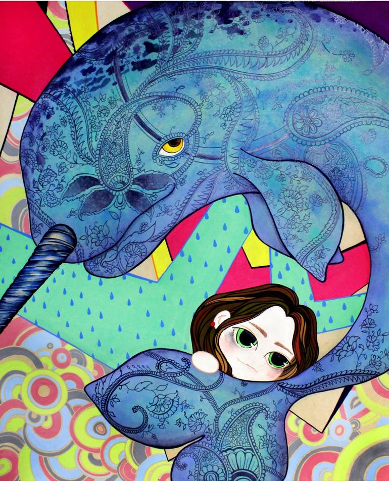 I paint my art work with theme of 俱生我執(구생아집,Gu Saeng A Jip) which means there is substantial ego that is unchangeable. In the other words, my art work tells about obsession of my innate ego; the obstinacy. When we hear obstinacy, it gives us negative feelings and it contains negative meanings but ironically I love my obstinacy. It is the belief that there is immortal and indestructible ego which preside the objects in our body and soul. I tell this story through my painting by creating new world which I created through the obstinacy. This world is fresh and it is not ordinary nor smooth at all. In my work art, Self-attachments and personal stories, depression, Aggressiveness, selfish, honesty are connoted. In modern days, I don’t try to hide my obstinacy. Due to this mind set my subjects of art work are striking existence in anywhere. As this world is filling with selfish of aggressive people who tries(try) to lower my self-esteem, I am more obsessed with my ego to survive in this world which is in dilemmas of depression. I am intoxicated with depression in order to be who I am, therefore I speak and act as I think and feel through my art work . My motto is to create art works with message which is “Don’t make a mistake with locking yourself up by following trends and fake lip-service in this splendid world, disgorge your obstinacy like child without any bias.”