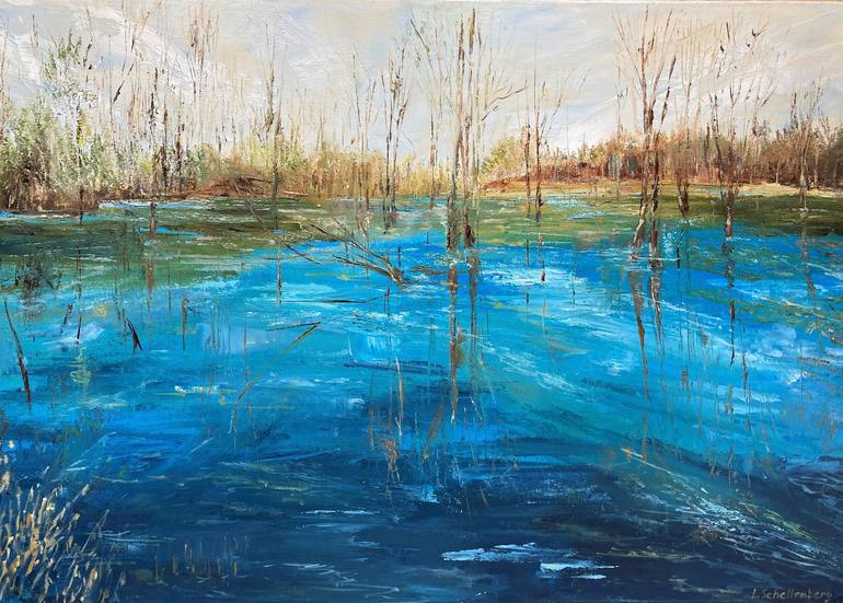 This work is written using a palette knife, with an imprimatur, and consists of several layers. High water, the time of spring. when the water overflows its banks and feeds the whole earth. when the sun begins to give warmth to people and a fresh spring wind pierces the lungs. Everything comes to li...
