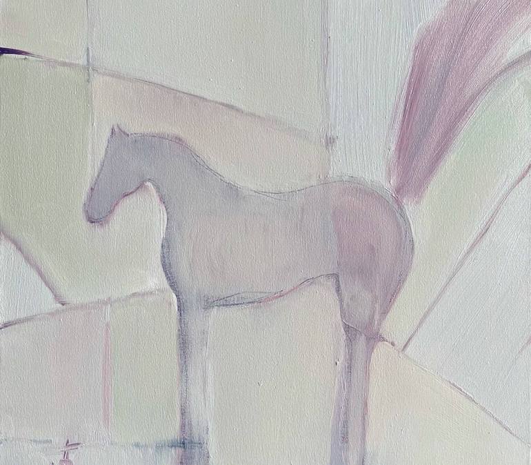 "Horse in the Fog" is an abstract painting that depicts the silhouette of a horse with a playfully raised tail. The fog does not frighten it, but intrigues. The kaleidoscope of planes of the background creates dynamics of movement in the contrast to the just static figure of a horse. The painting wa...