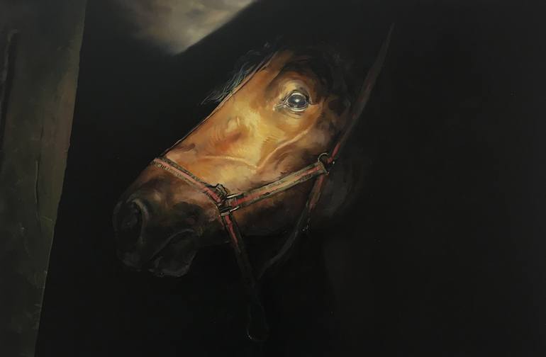 This painting, featured in the "Haunted Barn" show, began in a village near Krakow during winter and was finished in Barcelona. Inspired by a centuries-old family legend, the show explores ancestral conflicts with a local shaman in eastern Poland, resulting in cursed events like animal spells and bu...