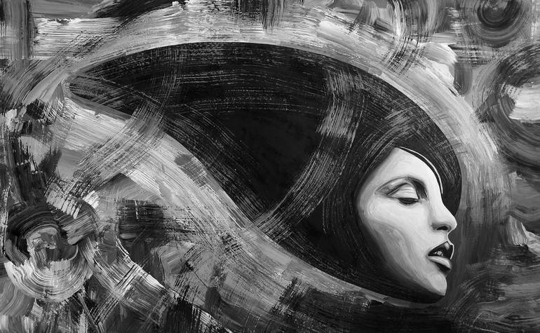 The fifth opera in the series "Hallucinating". An opera from the series of elongated heads of women, which treats her own erotic-artistic vision.